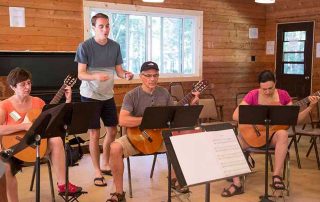 En plus d’être un virtuose de la guitare, Samuel est un excellent professeur. Toujours dans le plaisir et l’humour, il possède une excellente approche pédagogique. Il sait nous mettre en confiance et assurer notre motivation tout en nous faisant progresser à notre rythme. Dans une visée de constante amélioration, Samuel émet des commentaires constructifs et nous amène à surmonter les difficultés par petites bouchées. Ses petits trucs et astuces peuvent peut-être paraître anodins, mais ils permettent vraiment de passer par-dessus les embûches. C’est un plaisir d’apprendre à jouer de la guitare avec Samuel!